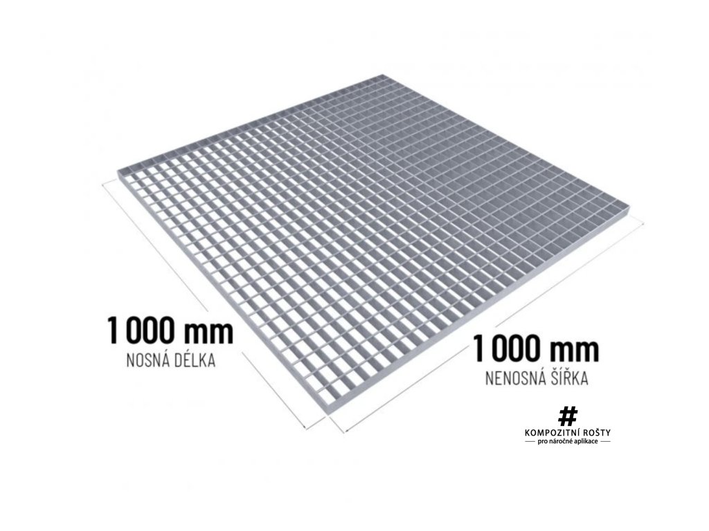 Ocelový rošt žárově zinkovaný 1000 x 1000 mm - výška 30 mm