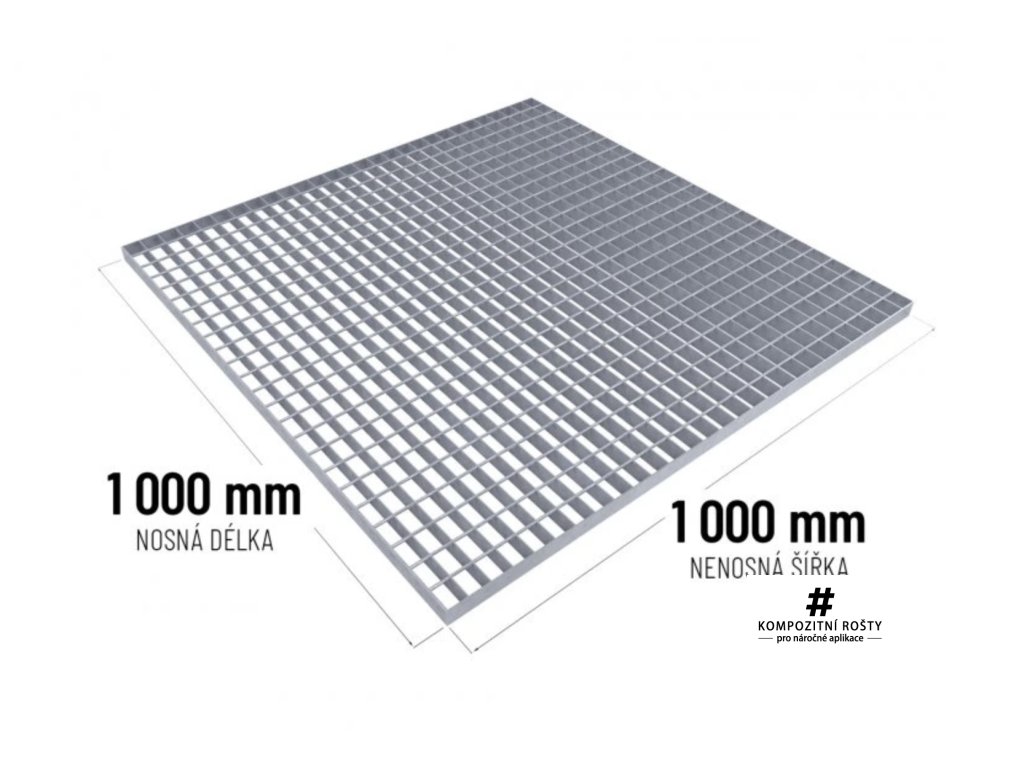 Ocelový rošt žárově zinkovaný 1000 x 1000 mm - výška 30 mm