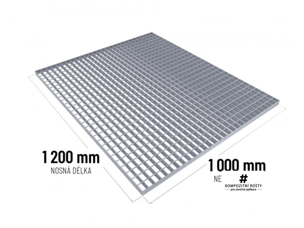 Ocelový rošt žárově zinkovaný 1200 x 1000 mm - výška 30 mm