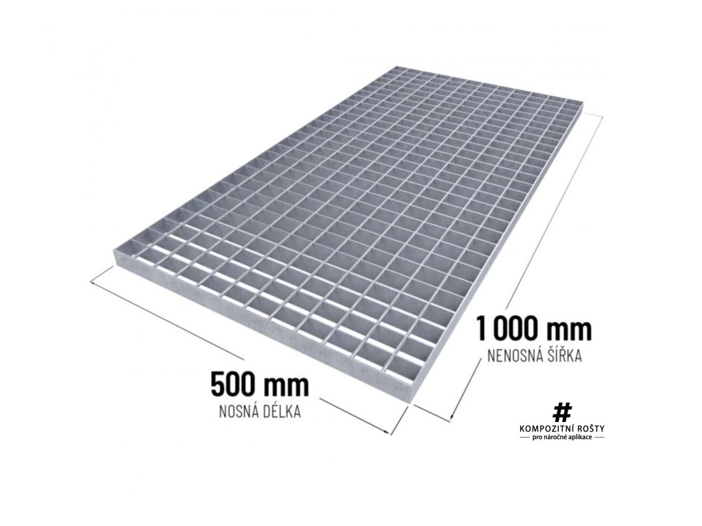 Ocelový rošt zinkovaný 500x1000mm - výška 30mm síla 2mm