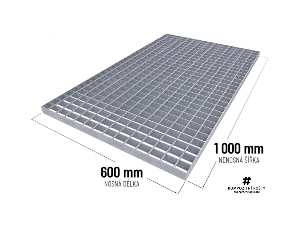 Ocelový rošt žárově zinkovaný 600 x 1000 mm - výška 30 mm