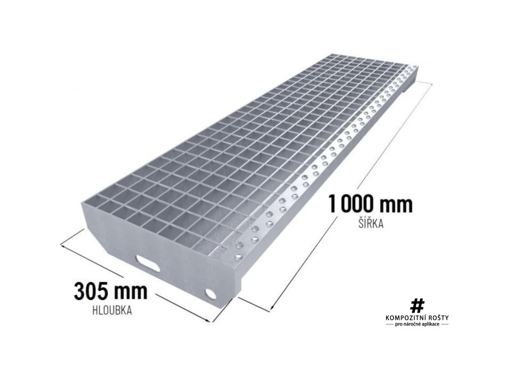 Ocelový schod zinkovaný 1000x305mm - výška 30mm síla 3mm
