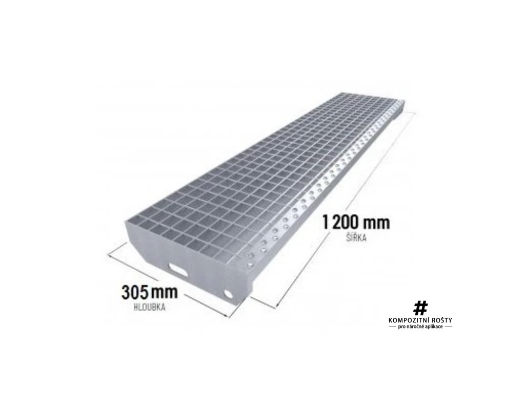 Ocelový schod zinkovaný 1200x305mm - výška 40mm síla 3mm