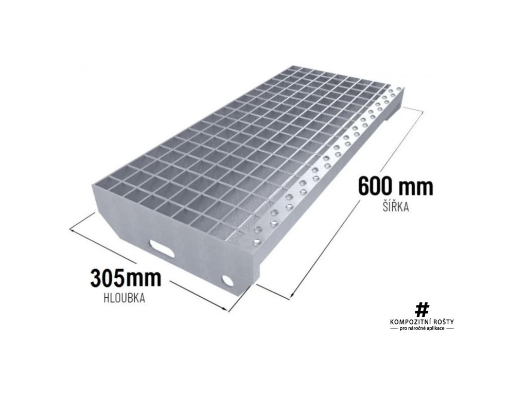 Ocelový schod zinkovaný 600x305mm - výška 30mm síla 3mm