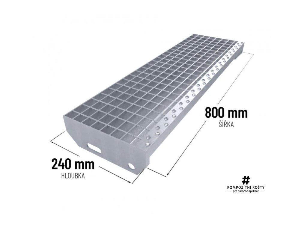 Ocelový schod 800 x 240 mm - výška 30 mm