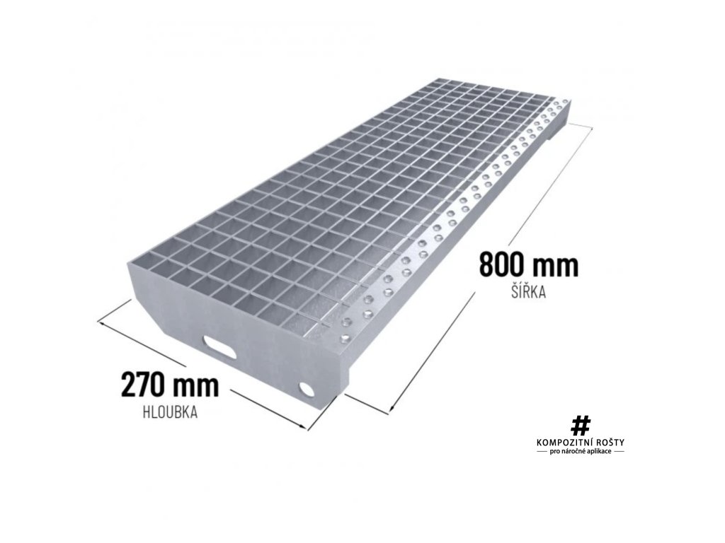Ocelový schod 800 x 270 mm - výška 30 mm