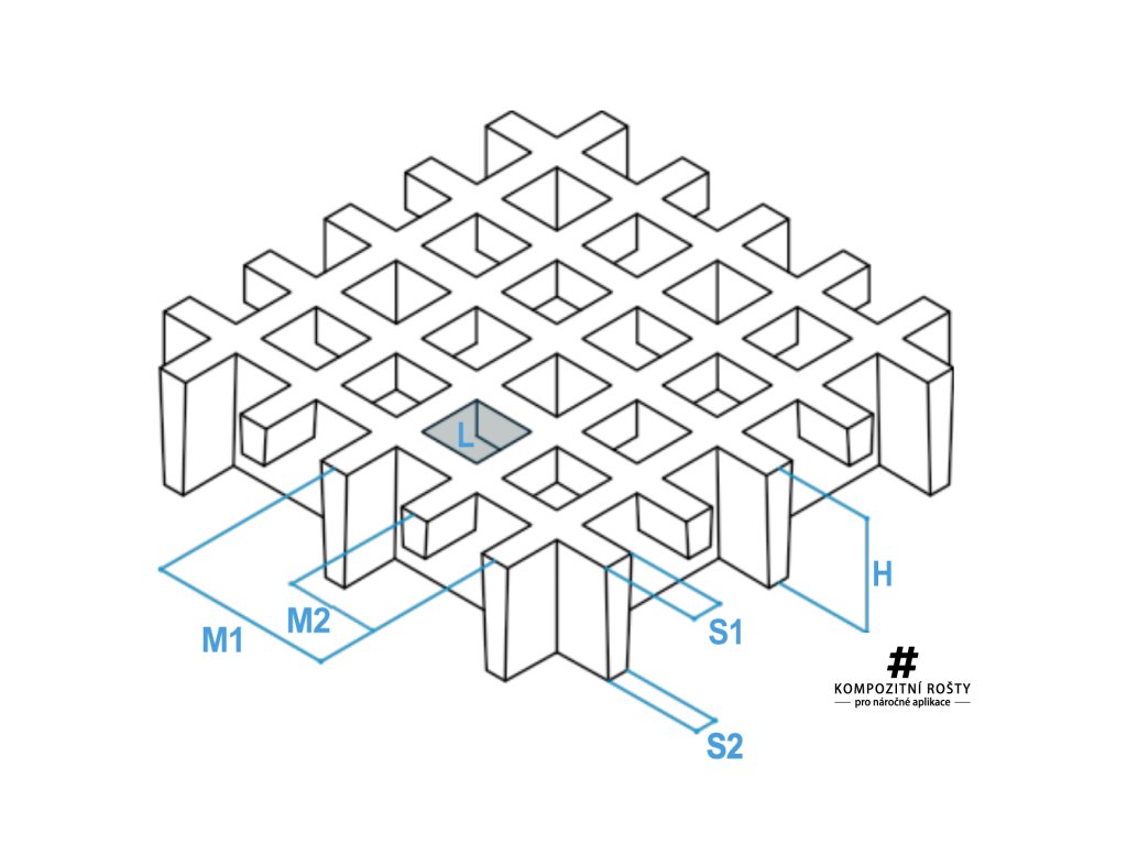 Kompozitní rošt s mini okem 1000x3000 mm - výška 30 mm - Prémium