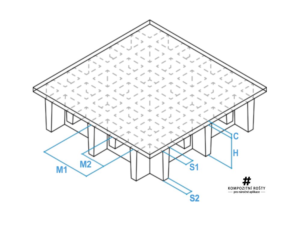 velikost vedlejšího oka vodivého kompozitního roštu: