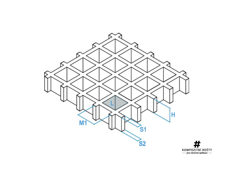 je určena pro použití v prostředích, kde je kromě typických vlastností sklolaminátových roštů požadováno, aby neakumulovaly elektrostatický náboj a mohly odvádět elektrické náboje.